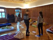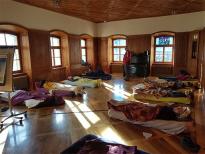 Bob’s Motto "Go and find out" begleitete uns die beiden Tage. Um die aktuellen Fragen der Gruppe zu erforschen, benutzten wir Hemi-Sync und ein paar zusätzliche Methoden. Die TeilnehmerInnen lagen auf bequemen Matratzen, um in die verschiedenen Fokusebenen zu gelangen. Zur Abwechslung gab es einmal früh morgens eine spezielle Aufgabe im Meditationsraum. Überraschenderweise begegnete uns zweimal der Hausgeist des Klosters. Für das leibliche Wohl war bestens gesorgt. Wir wurden sehr lecker vegetarisch bekocht. Das Wochenende war so toll, dass wir beschlossen, uns nächstes Jahr wieder in Altdorf zu treffen.