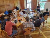 Dann sammelten wir die Themen der restlichen Mitglieder. Diese wurden dann Punkt für Punkt bis zum Sonntagnachmittag abgearbeitet. Dazu gehörte ein Block «Arbeit mit Kartensystemen» mit konkreten Anwendungen; eine sehr intensive «systemische Aufstellung»; ein Gruppenhealing, wo wir die Ursache in der Vergangenheit erkannt haben und immer noch am Lösen sind; Entdecken von Elementarwesen im wunderschönen Klostergarten; einen Ausflug mit Badespass im kühlen Urnersee; und wie schon vor zwei Jahren ein verdeckter Ausblick auf die nächsten zwei Jahre. Diesmal hatte jeder Teilnehmer ein Quartal, ohne zu wissen, welches. Spannend war, dass sich die Ergebnisse der einzelnen Quartale zu einem logischen Ablauf zusammenfügten. Und jetzt sind wir alle gespannt, wie sich die Realität gestaltet und ob sie sich an unsere Voraussagen hält.